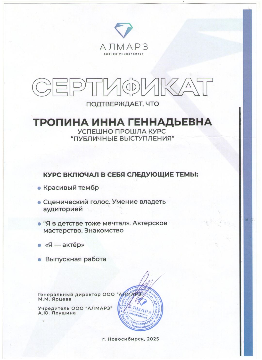 Работает в Новосибирске