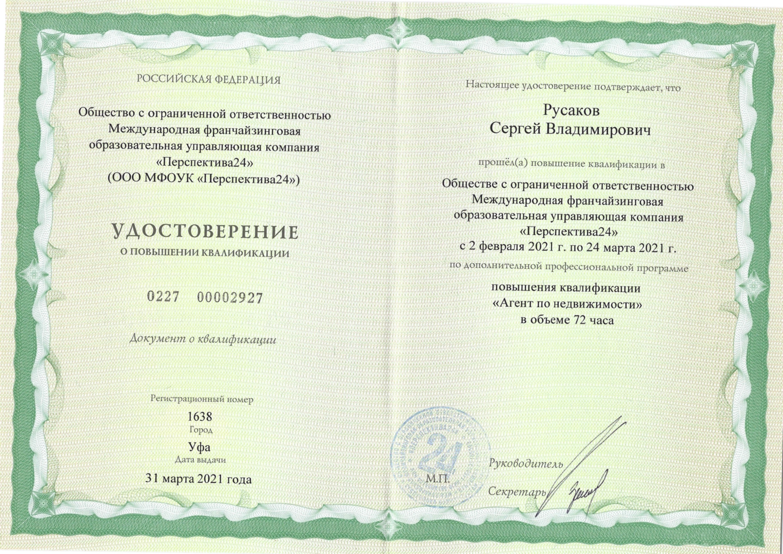 Хотим оставить положительный отзыв о работе риэлтора Русакова Сергея за проделанную работу по покупке квартиры и оформлении ипотечного кредита. Спасибо за оформление всех необходимых документов, разъяснение интересующих моментов, быстрое и грамотное проведение сделки. Хочется отметить профессионализм и ответственное отношение к выполняемой работе и пожелать профессиональных успехов в данной сфере.