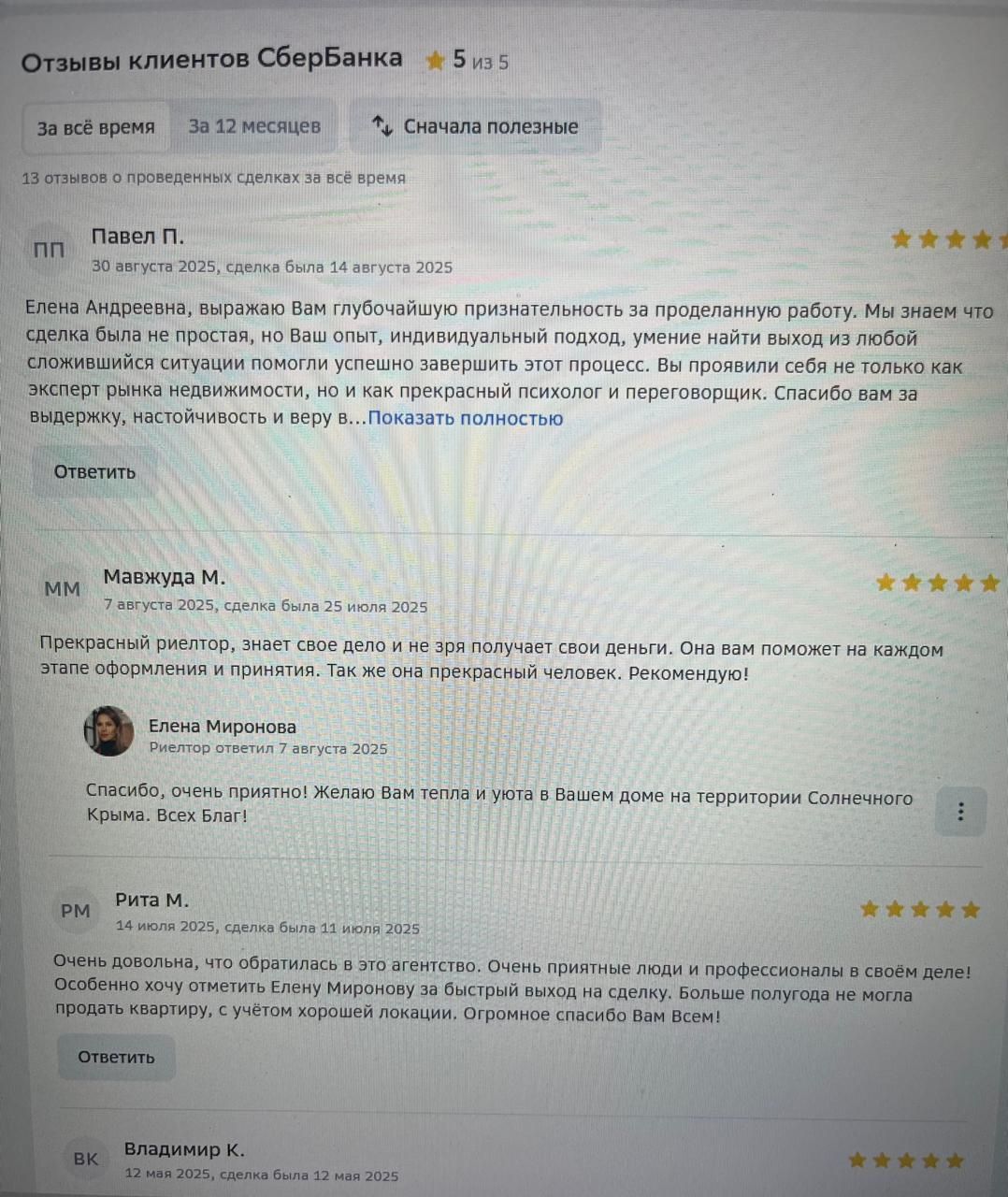 Елена МироноваРиелтор ответил 7 августа 2025Спасибо, очень приятно! Желаю Вам тепла и уюта в Вашем доме на территории Солнечного Крыма. Всех Благ!