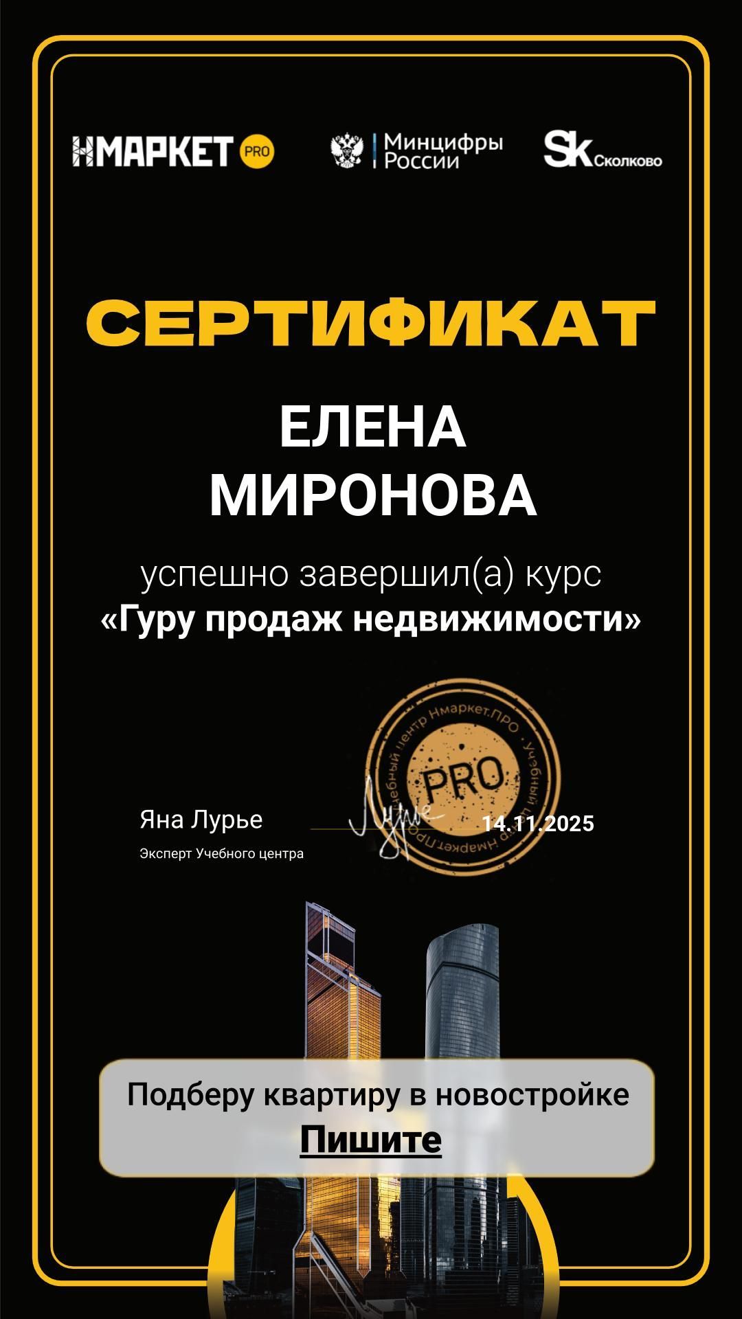 Елена Андреевна, спасибо большое за проделанную работу, хотел было уже отказаться от затеянного, но вы помогли все реализовать и довести начатое до конца🙏 Советую данного специалиста, помогла в сложной сделке💪