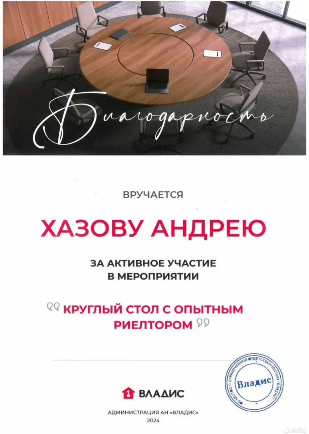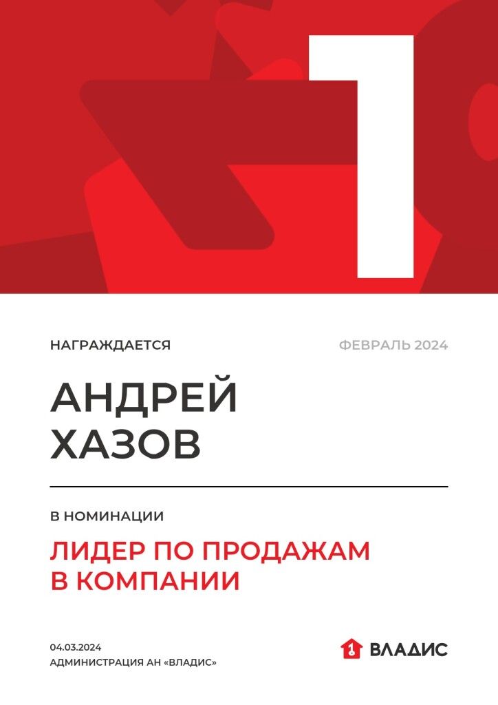 Хочется выразить огромную благодарность Хазову Андрею Игоревичу за грамотную организацию и проведение сделки. Риелтор был с нами от начала до самого конца. С его уверенностью и профессионализмом мы чувствовали себя как за каменной стеной в полной безопасности. Очень душевный и позитивный человек. Его работой остались довольны на все 100%. Будем в дальнейшем его рекомендовать друзьям и знакомым....