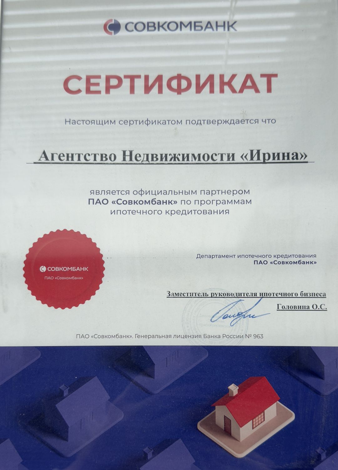 Выражаем огромную благодарность агентству недвижимости "Ирина» за помощь в совершении успешной сделки . Отдельно выражаем слова благодарности Арзомасовой Ирине - вежливому , грамотному и пунктуальному специалисту.