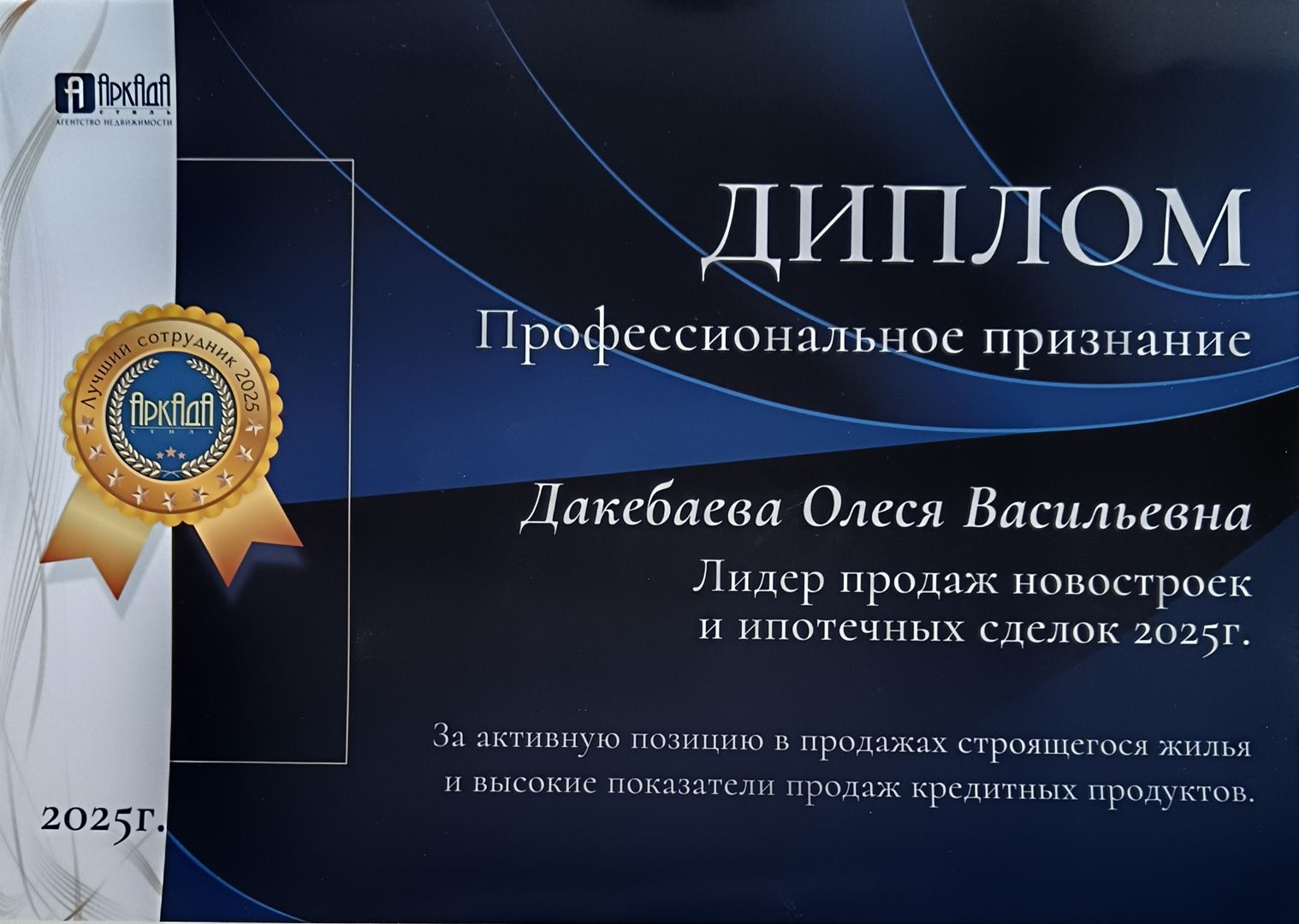 Профессионализм, надежность и пунктуальность при выполнении работы, вежливость и доброжелательность, комфортность в общении, нацеленность на результат. Рекомендую от всей души Декебаеву Олесю Васильевну, как риелтора