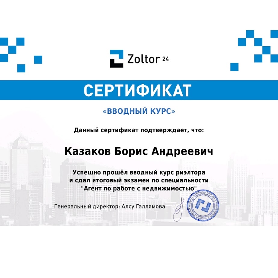 Большое спасибо Казакову Борису. Прекрасный специалист своего дела, на протяжении всего периода сделки оказывала грамотную консультацию, давал дельные советы. Рекомендую его как добросовестного и грамотного риэлтора.