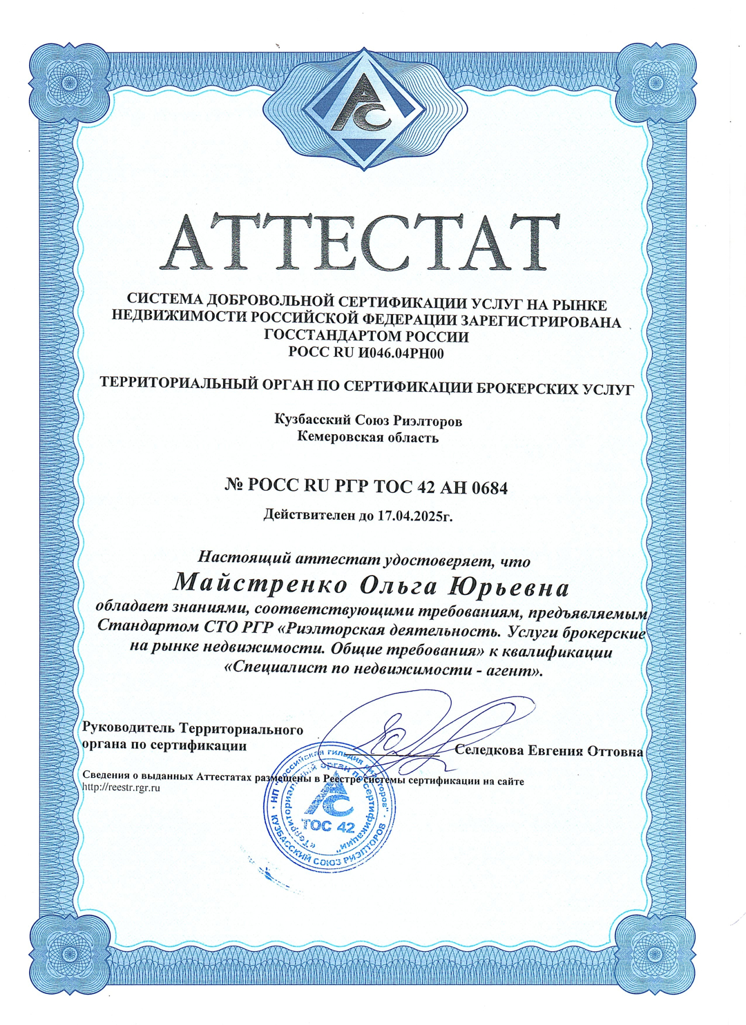 Очень рада за оказанную помощь риелтора Ольги Мастренко агентство Астра выражаю огромную благодарность без неё я бы не смогла все оформить очень рекомендую она прекрасный специалист и хороший человек!!!