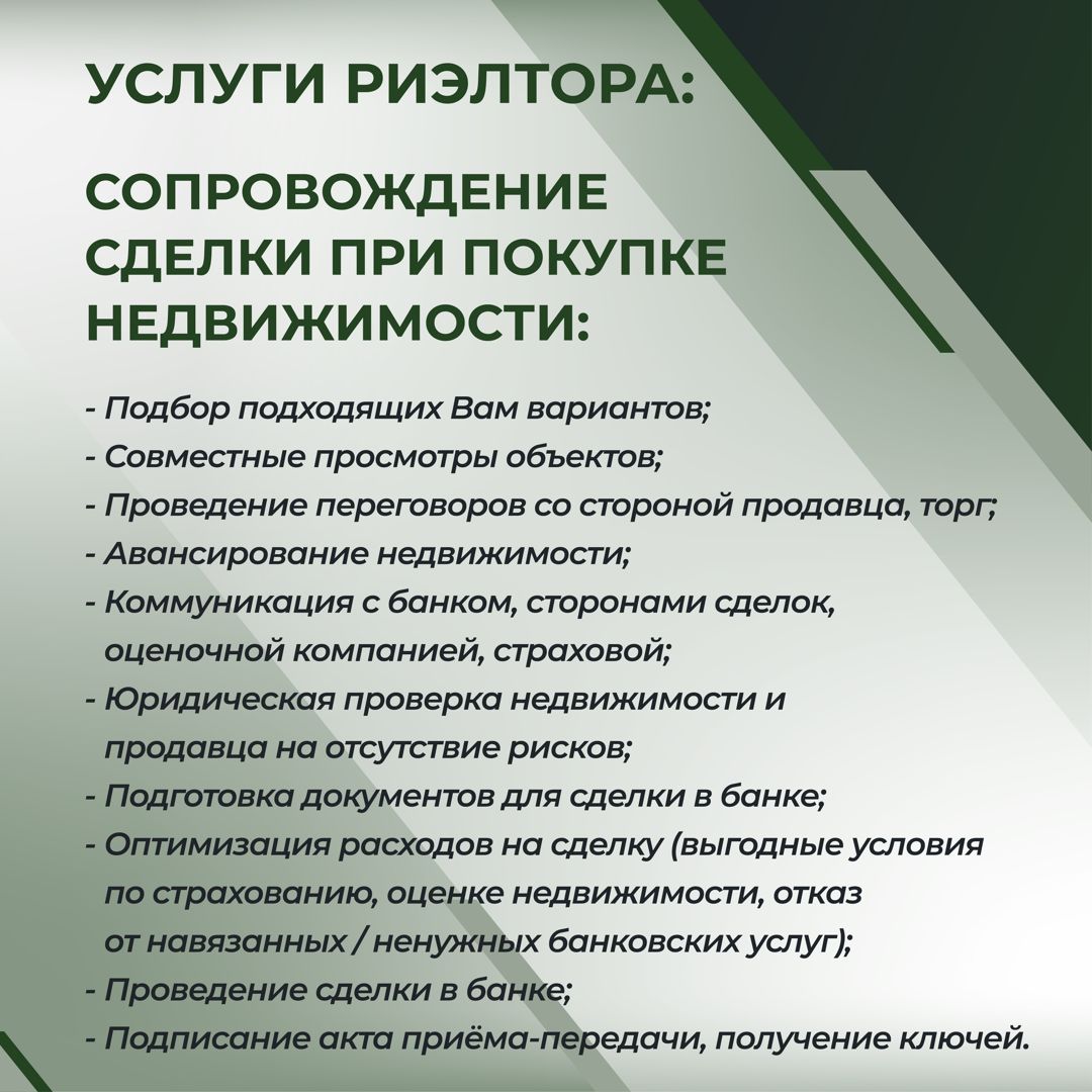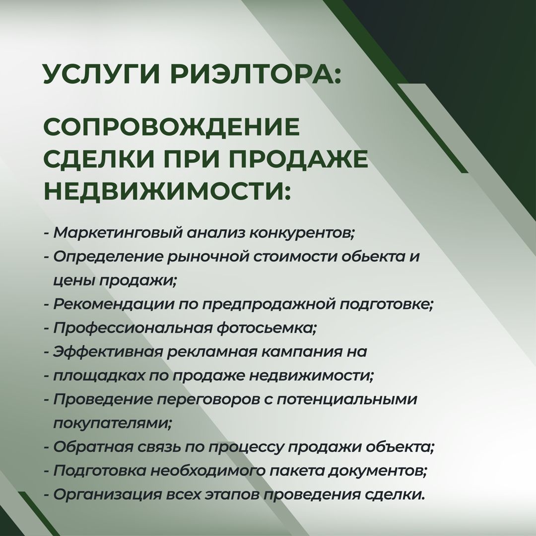 Риелтор оказывает услуги по продаже и аренде: