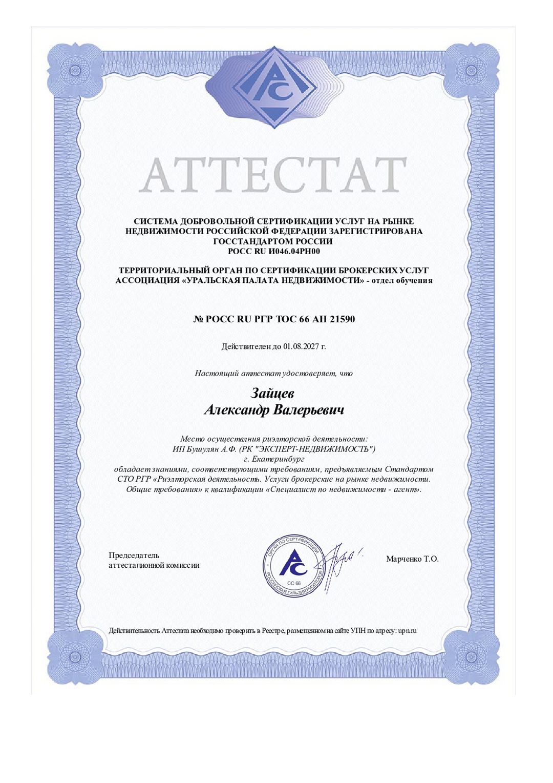 Хочу выразить огромную благодарность риелтору, Зайцеву Александру Валерьевичу, за его профессионализм! Сделка прошла успешно и быстро для меня. Честная работа, чёткие действия, индивидуальный подход. Желаю дальнейшего успеха и новых клиентов!!!