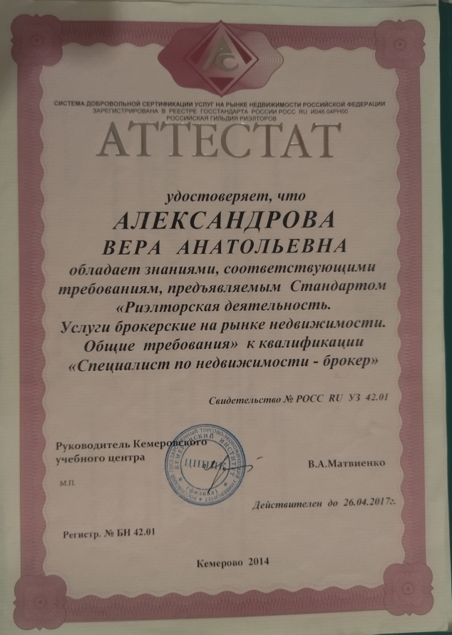 Обратилась к риелтору Вере, и не пожелела! Покупали дом в деревне, была проделана огромная работа, за что спасибо Вере!!! Если покупаете или продаёте квартиру/дом, то обращайтесь только к Вере!!! Огромная благодарность! Всегда выслушает, даст советы и ответит на все вопросы!!!