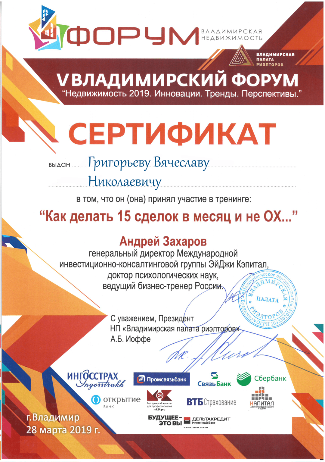 Хочется выразить большую благодарность Григорьеву Вячеславу Николаевичу за помощь в продаже и покупке квартиры! Профессионал своего дела! Спасибо за работу, и успехов Вам! Буду рекомендовать Вас своим знакомым.