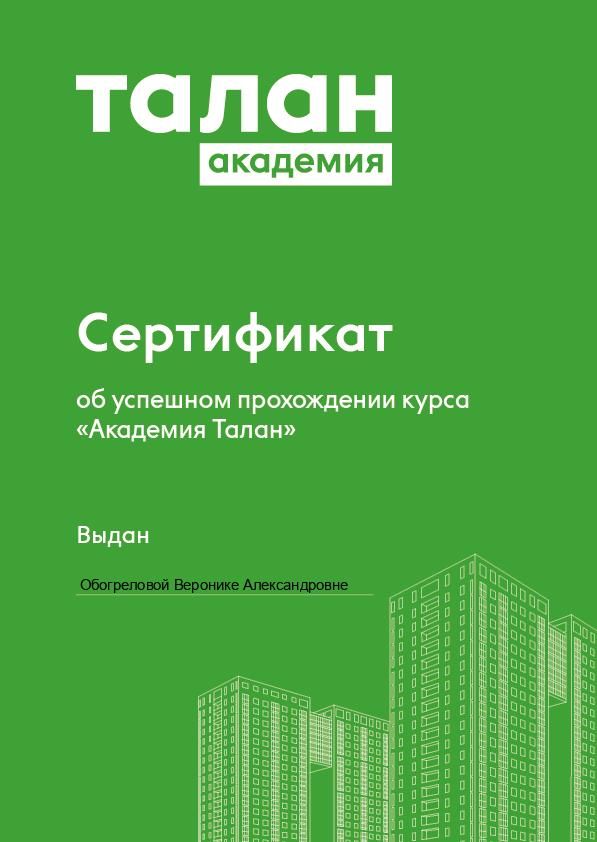 Вероника - высококлассный специалист в своём деле! Рассказала нам о плюсах и минусах ЖК в городе, помогла определится с выбором,провела осмотры в удобное для нас время, а также вела сделку от начала и до конца, и отвечала на все наши вопросы! Благодарим за сотрудничество и теперь будем рекомендовать Веронику своим знакомым и друзьям!