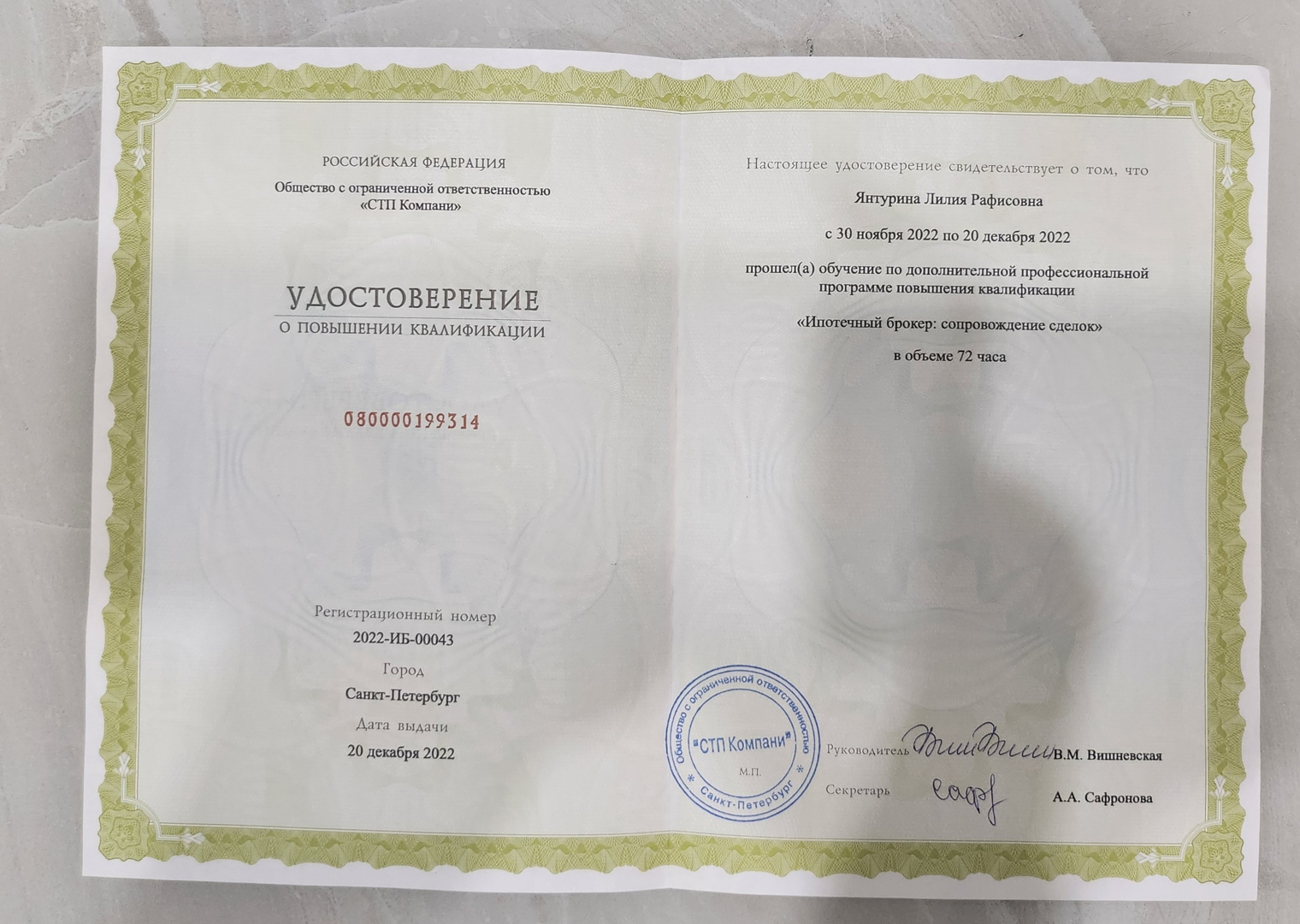 Хочу выразить огромную благодарность Лилие Рафисовне за помощь в покупке квартиры и подготовке всех необходимых документов. Спасибо за профессионализм, организованность, оперативность и грамотный подход. Успехов Вам!!!