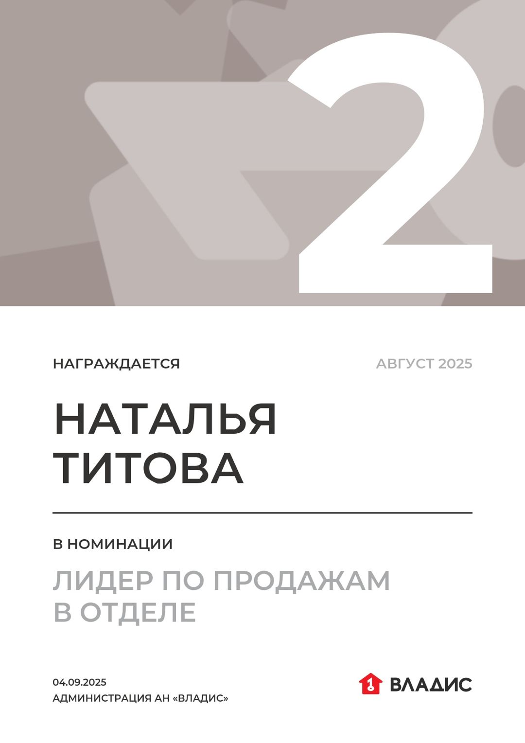 Наталья отличный риелтор. Помогла с выбором объекта и быстрым оформлением сделки. Однозначно рекомендую.