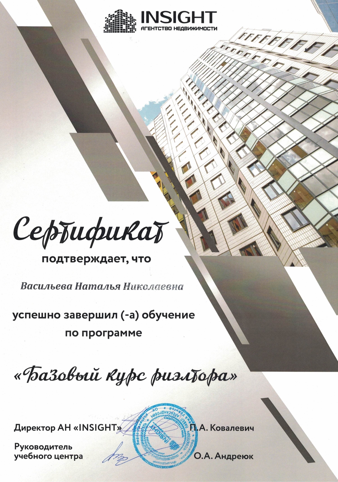 Наталья, очень хороший риэлтор, приятный человек и настоящий профессионал своего дела. Благодарю Вас, за помощь в выборе и оформления уютной квартиры, желаю Вам, дальнейших успехов, хороших клиентов и карьерного роста!