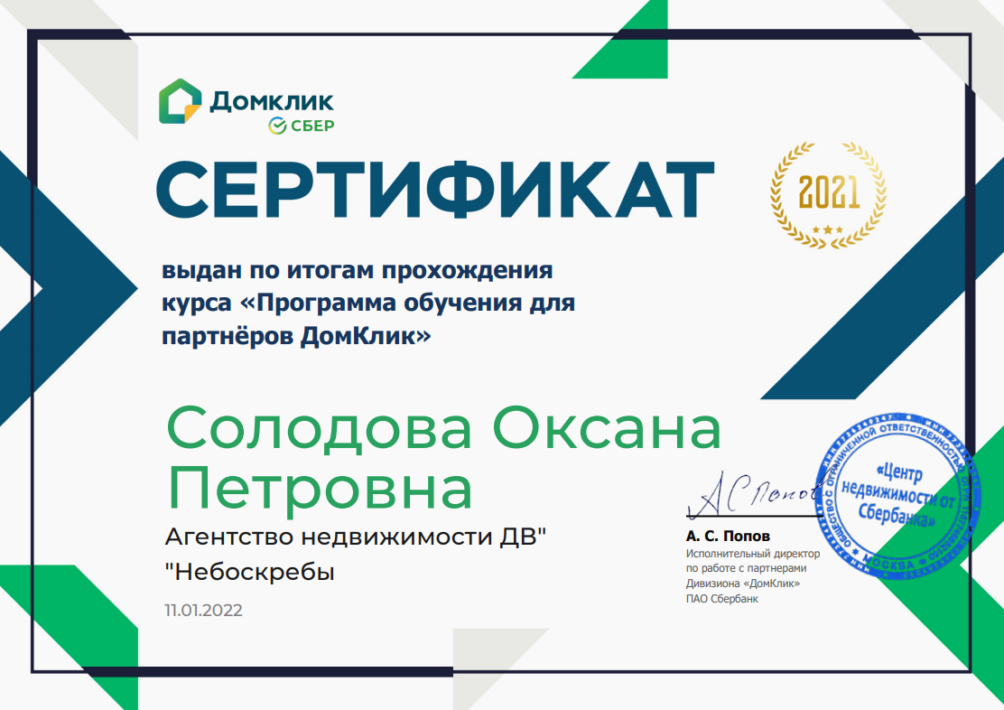 Если вам нужно найти агента по недвижимости в Хабаровске для продажи или покупки квартиры, воспользуйтесь поиском на Домклик. Ориентируйтесь на опыт работы агента, количество совершённых сделок и отзывы.
