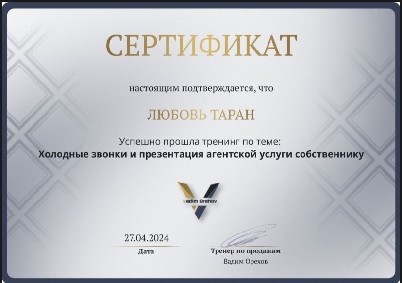 Хочу выразить огромную благодарность Любовь Валентиновне, профессионалу своего дела! Помогла в приобретении квартиры, консультировала по любым вопросам на всех этапах. Смело могу рекомендовать её, какие бы сложности не возникали, она с лёгкостью найдёт выход и сделка состоится!