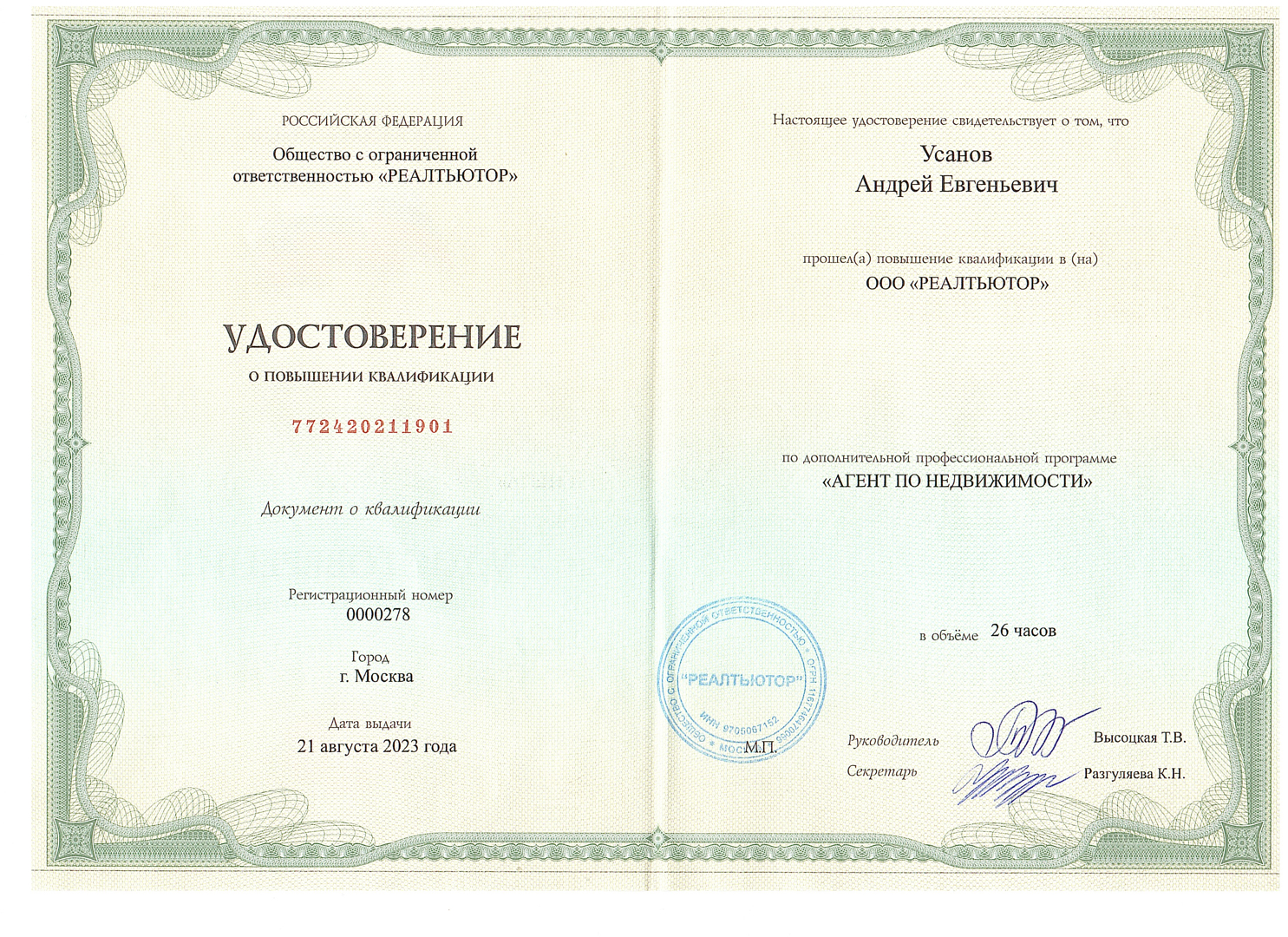 Работаю активно на рынке с 2021 года. Имею профессиональное образование (ДИПЛОМЫ и УДОСТОВЕРЕНИЯ государственного образца): 1. Агент по недвижимости. 2. Руководитель офиса продаж недвижимости. 3. Специалист по юридическому сопровождению сделок с недвижимостью. МОЯ СПЕЦИАЛИЗАЦИЯ: 1. Переезды (улучшение жилищных условий). 2. Раздел недвижимого имущества (наследство, развод). 3. Получение денег из...