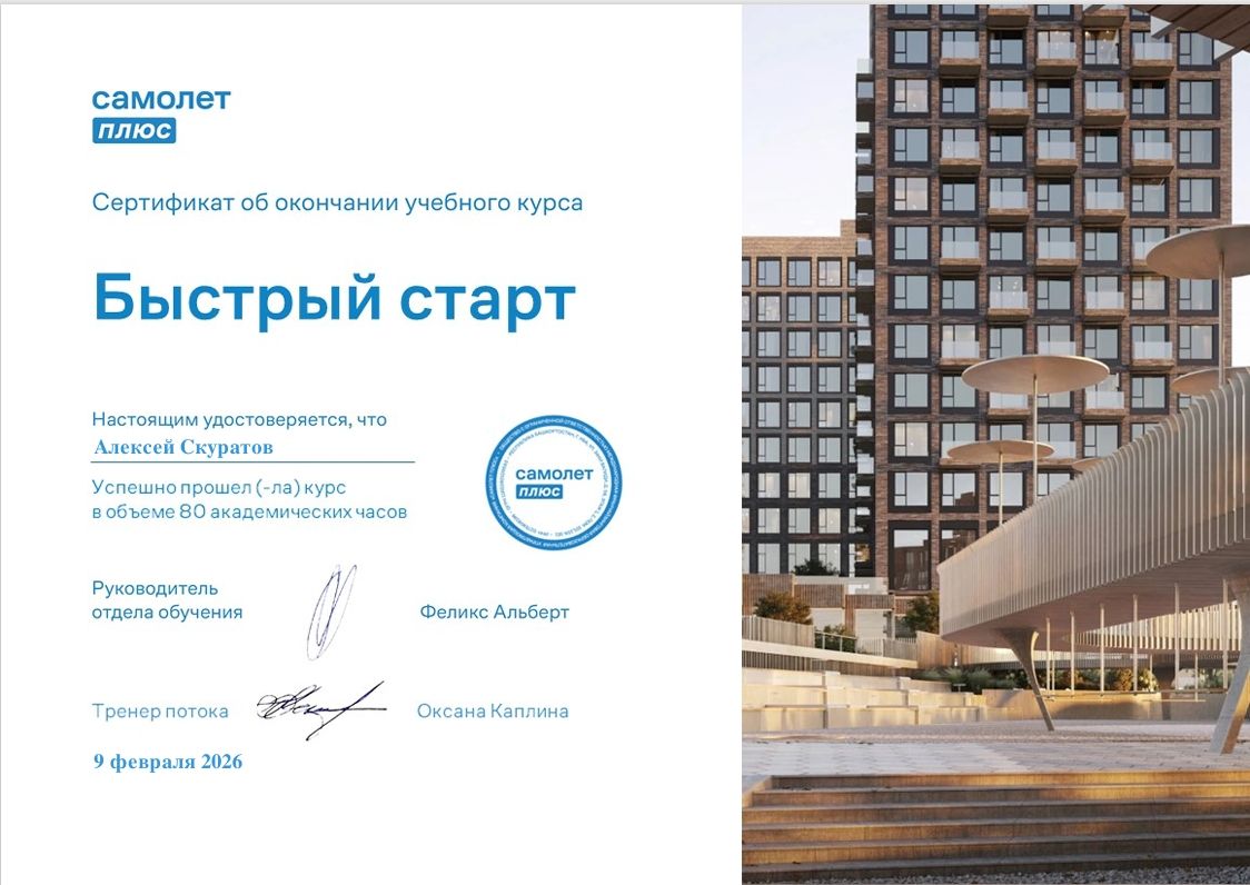 Спасибо лично Алексею Скуратову и сопровождающей команде VYsotsky estate за профессиональный подход и результативный на сделку по продаже квартиры в г. Красногорск , однозначно рекомендую данного специалиста . Ps Все поставленные цели (сроки, выручка) были успешно достигнуты!