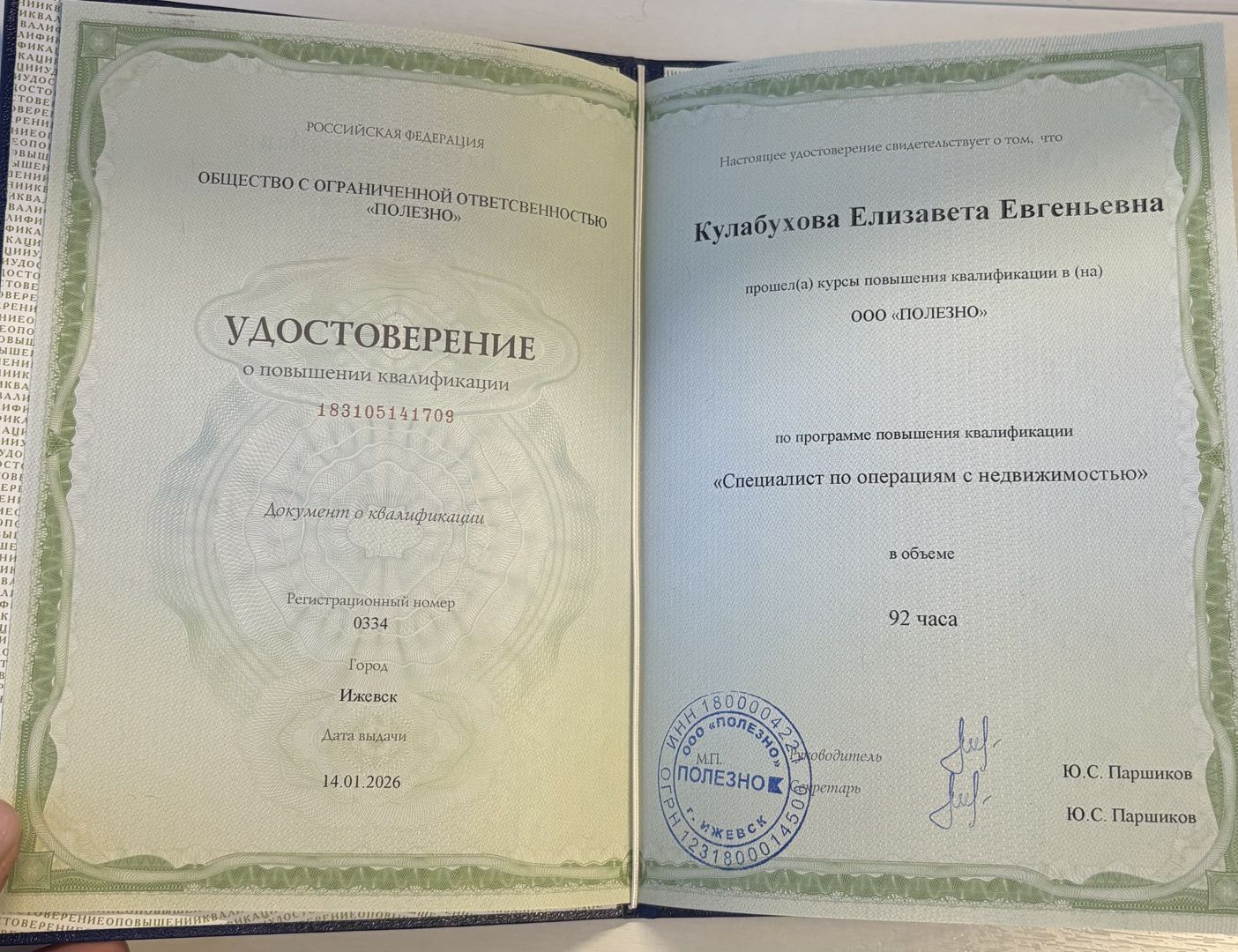Елизавета Калабухова, очень энергичный, целеустремлённый человек и самое главное профессиональный специалист. Решает вопросы быстро и четко, в моем случае сделка состоялась в ситуации, когда возможность ее проведения была спорной 50/50%, убелила меня попробовать и подождать результата, в итоге Елизавета и агентство недвижимости "Полезные люди"помогли в одобрении получения льготной ипотеки и...