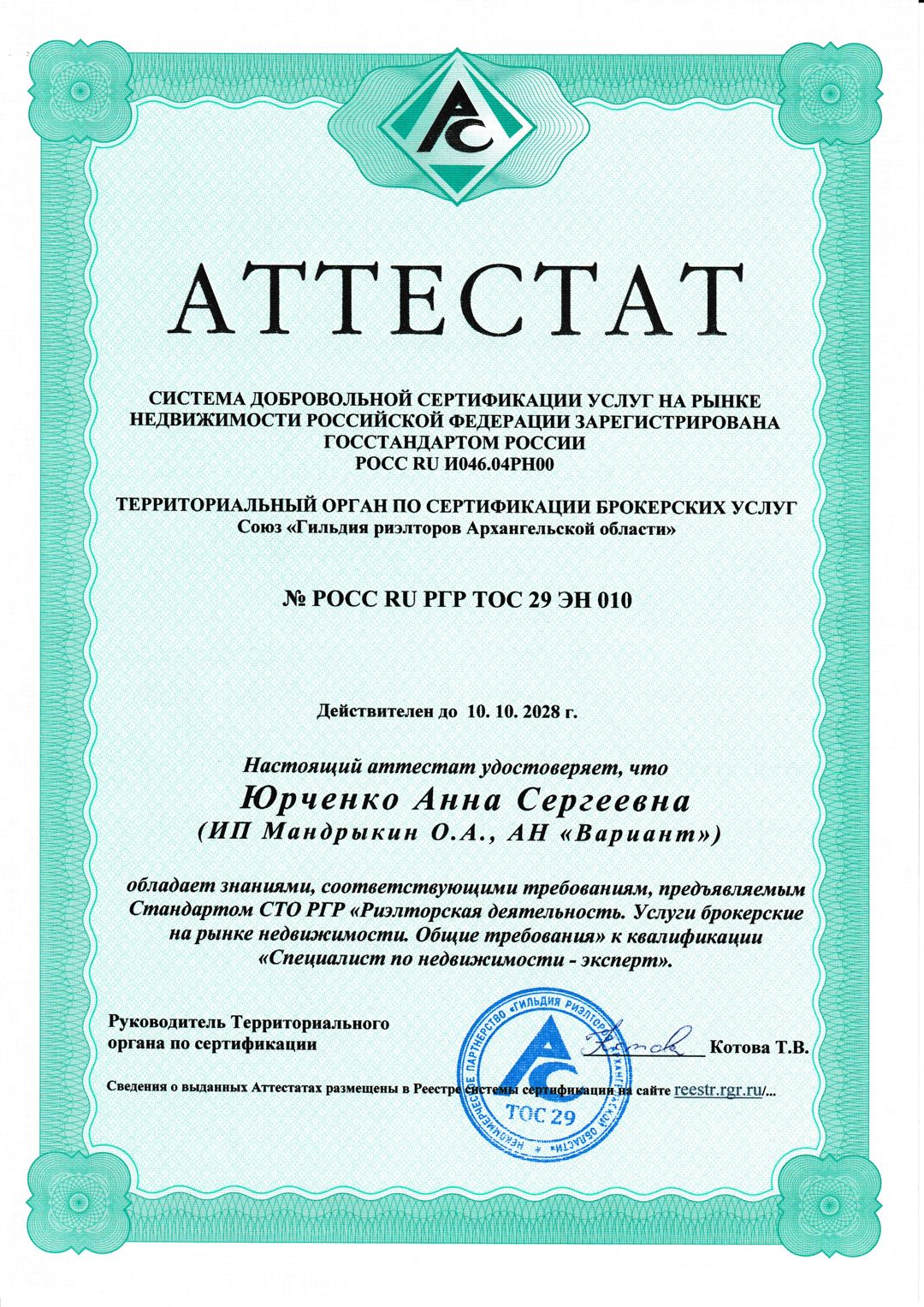 Абсолютно готова рекомендовать Анну Сергеевну Юрченко. Анна проявила максимум внимания и отзывчивости. Я продавала квартиру, находясь в другом городе. Единственное, что мне нужно было сделать это доверенность. Анна оперативно информировала о каждом шаге сделки, сама сделка прошла ыстро и без запинок, максимально комфортно, уровень доверия самый высокий.