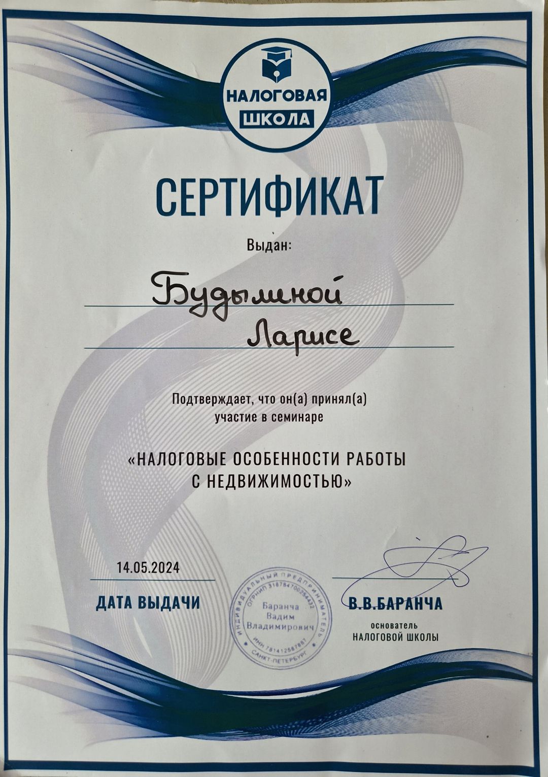 Лариса Сергеевна - прекрасный риэлтор. Хочется отметить высокий профессионализм, доброжелательность, все возникающие вопросы решались чётко и оперативно.