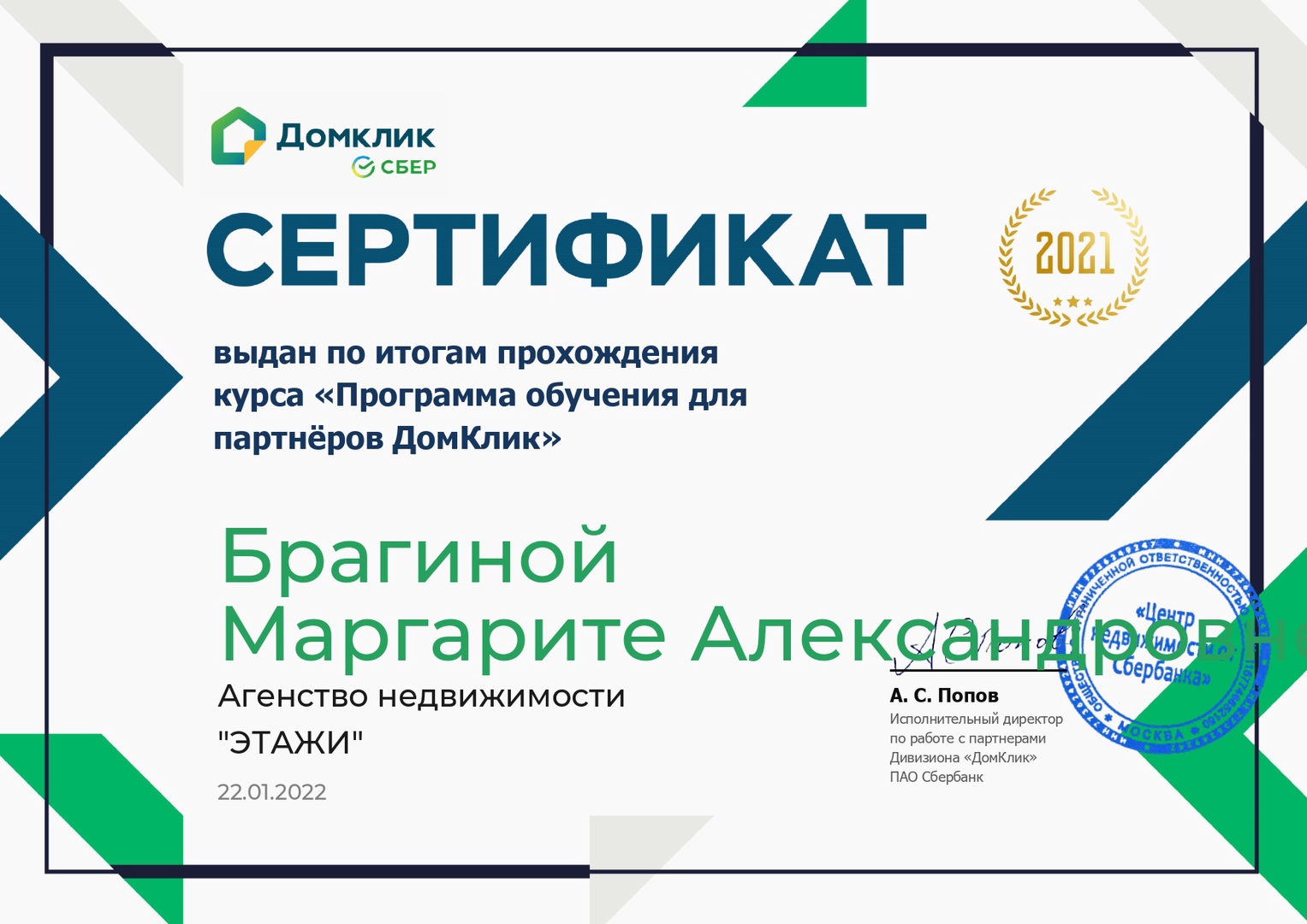 Хочется оставить свой положительный отзыв и благодарность риэлтору Маргарите Брагина. За очень честный и внимательный подход к нюансам сделки, пожеланиям и опасениям клиента, за её готовность практически в любое время ответить на вопрос или дать консультацию. Рекомендуем ! Спасибо! Удачи во всех делах и начинаниях!