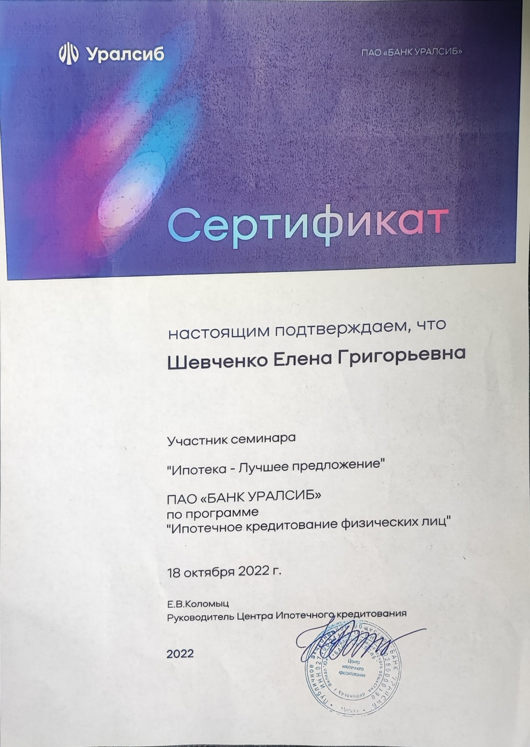 Хочу выразить огромную благодарность риэлтору Елене Шевченко. Компетентный специалист, проделала огромную работу для заключения и подготовки нашей сделки, всегда на связи, четко и понятно ответит на все интересующие вопросы. Нам очень повезло, что нашу сделку вела именно Елена . Большое спасибо!!!!