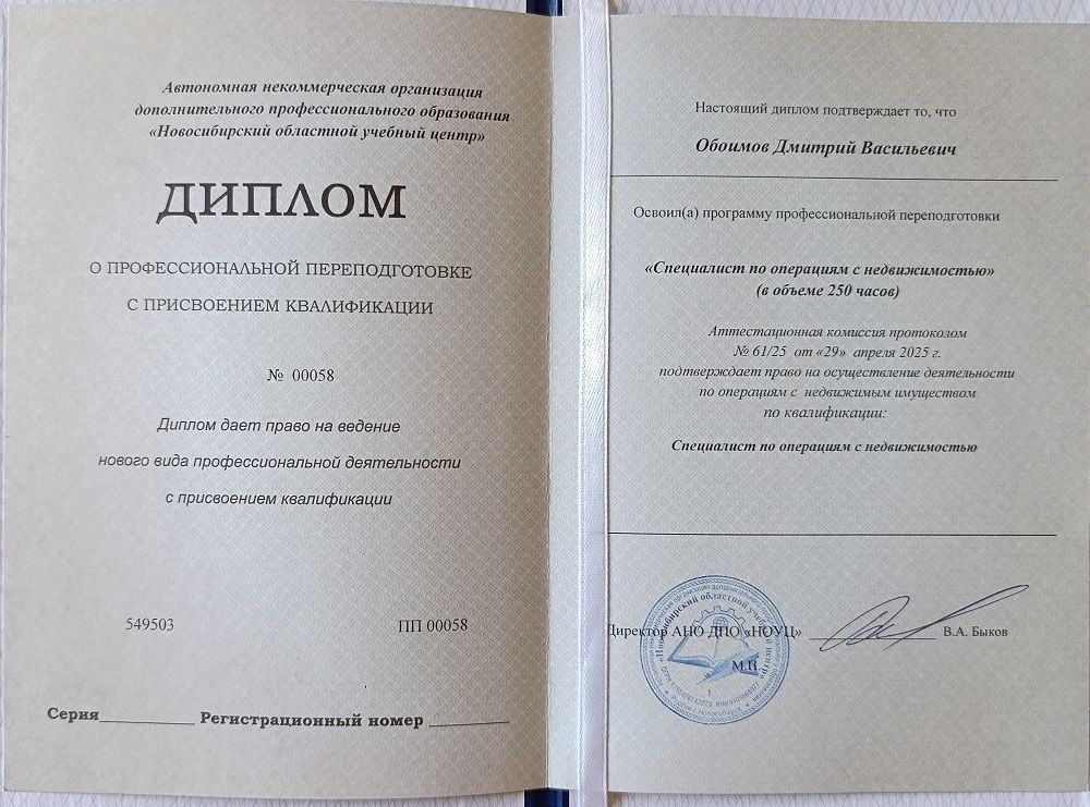 Дмитрий Обоимов грамотно организовал продажу дома с участком. Дом был продан быстро благодаря деловым качествам и опыту риелтора. Рекомендую к сотрудничеству.