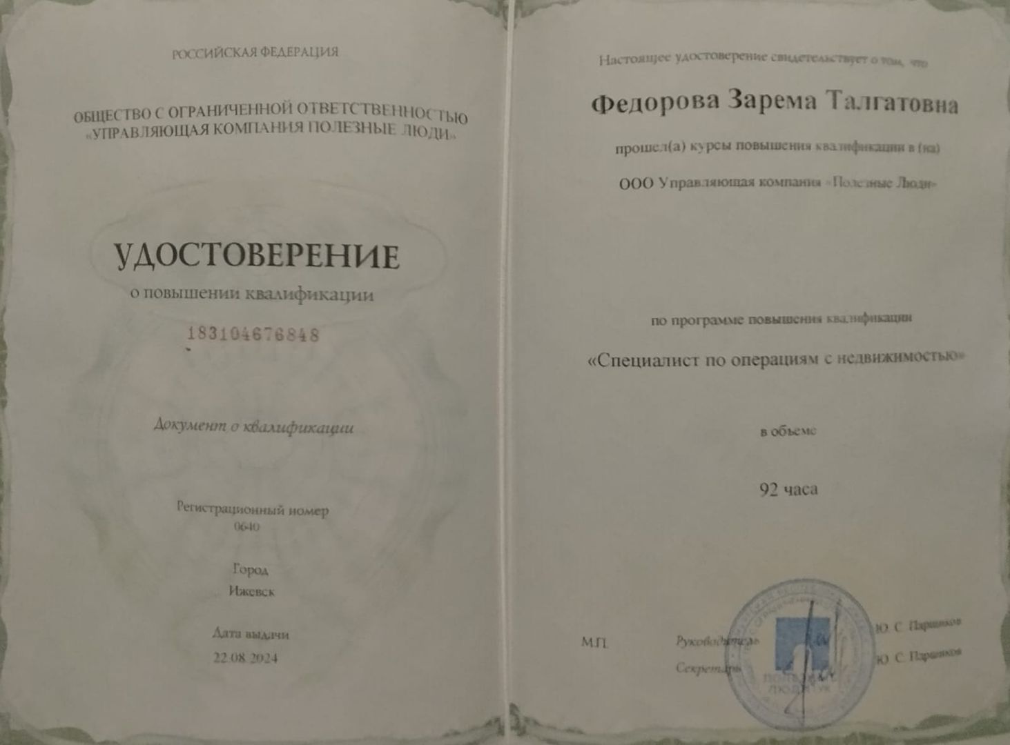 Зарема очень грамотный специалист своего дела ,добрая ,отзывчивая.Подобрала хороший вариант квартиры где и хотели и с легкостью провела нам сделку на большом расстоянии по онлайну,не отказывала в просьбах,очень вежливая,приятная .Рекомендую всем🙌