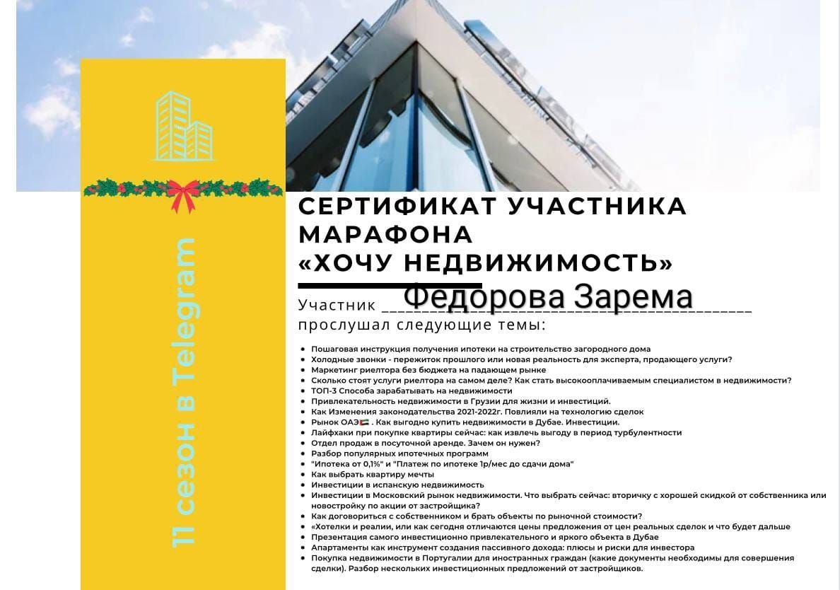 Огромная благодарность Зареме за качественно проделанную работу. Вела сделку от начала и до конца. С удовольствием рекомендую работу с Заремой! 💐