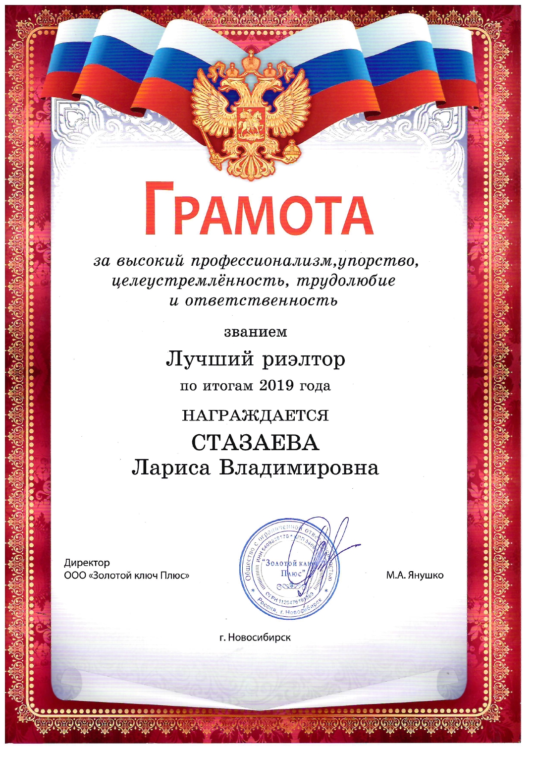 ИНН 5409238178, ООО "ЗОЛОТОЙ КЛЮЧ ПЛЮС", Новосибирская обл, г Новосибирск