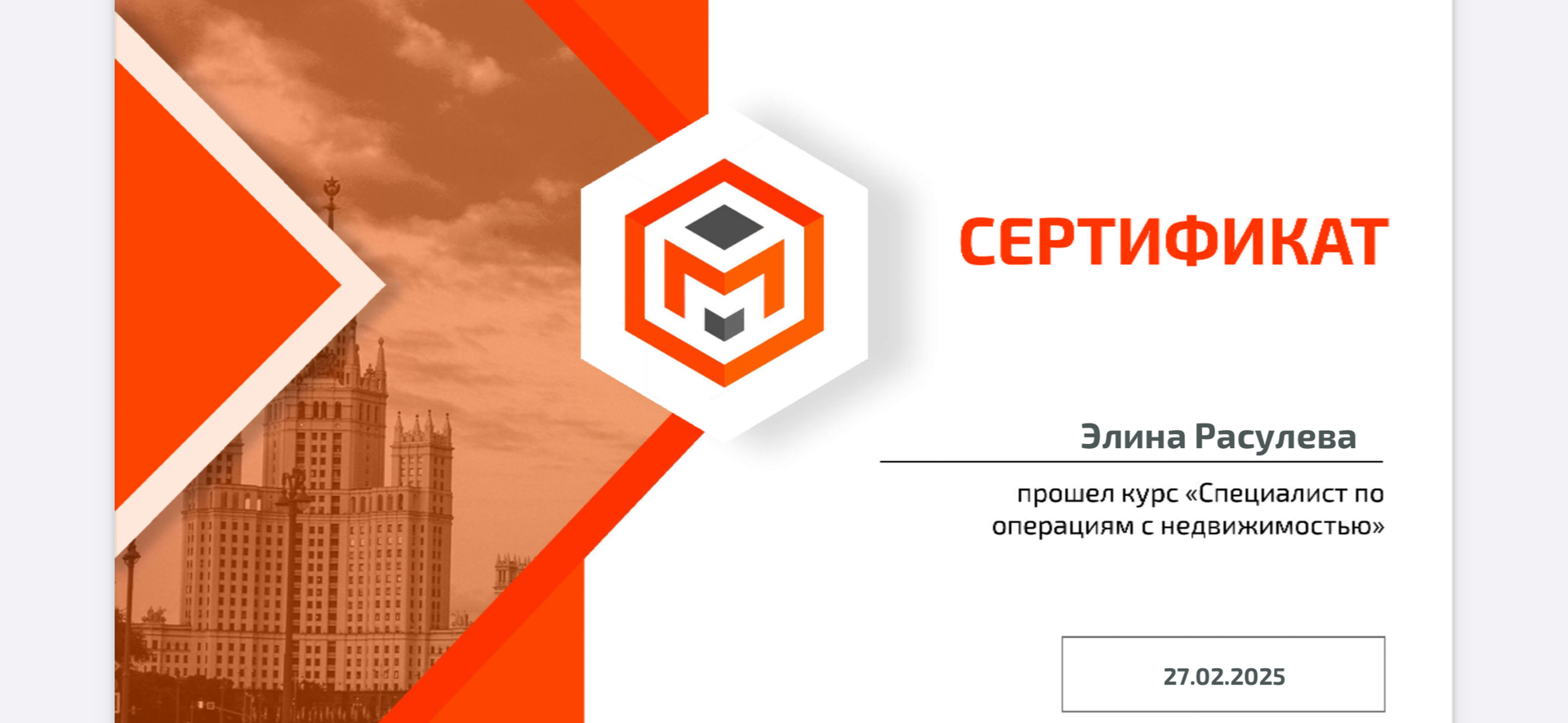 Элине Расулевой - риелтору, на которого МОЖНО ПОЛОЖИТЬСЯ! Хотим выразить огромную благодарность Элине за сопровождение сделки по покупке нашей квартиры. Элина проявила себя как настоящий профессионал: все было организовано быстро, четко и грамотно. На каждом этапе — от поиска и просмотров до оформления документов — она действовала слаженно, давала подробные консультации и внимательно относилась...