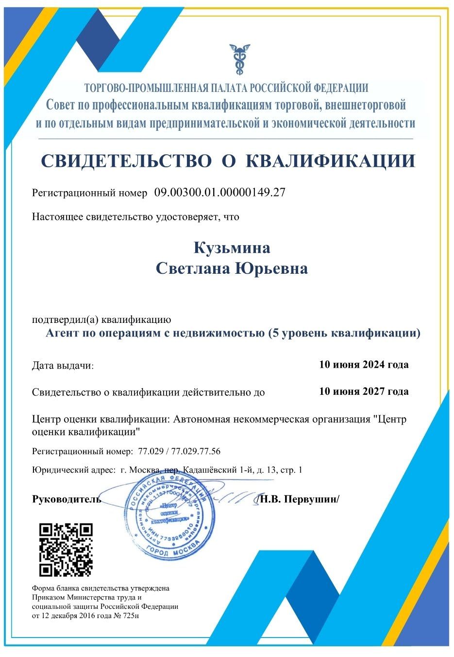 Здравствуйте! Я Кузьмина Светлана, ваш персональный эксперт по недвижимости. Я специализируюсь на проведении безопасных и быстрых сделок любой сложности. Мой главный приоритет — защита ваших интересов и достижение наилучшего финансового результата.