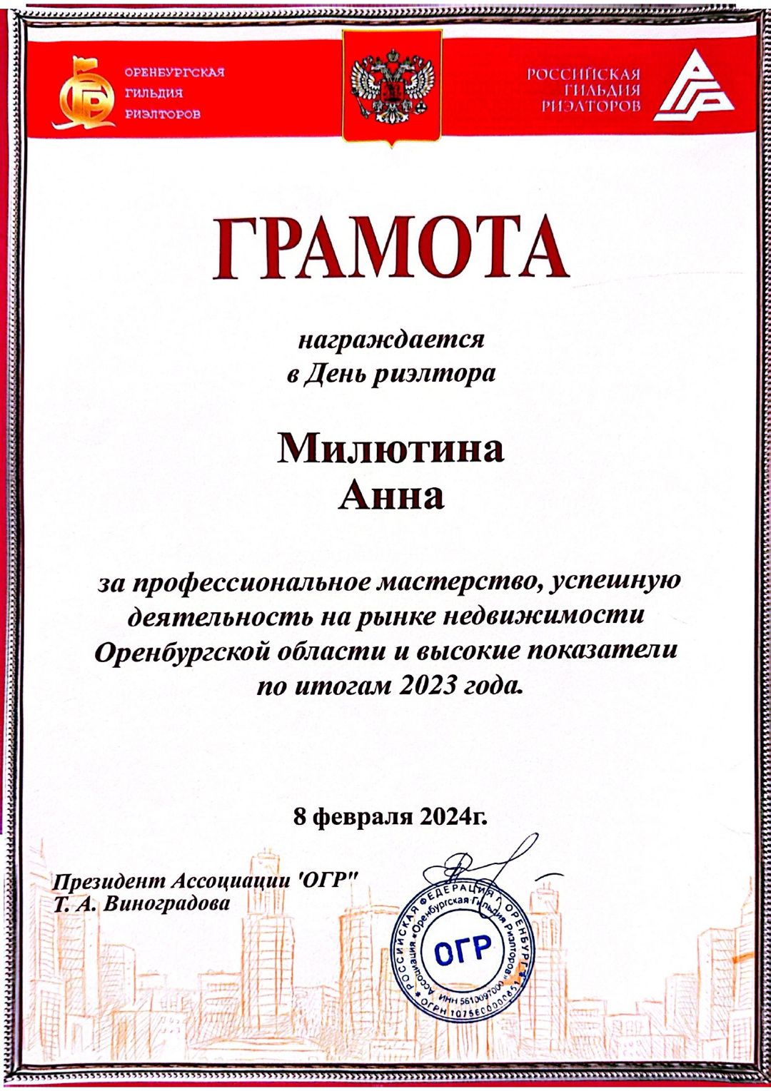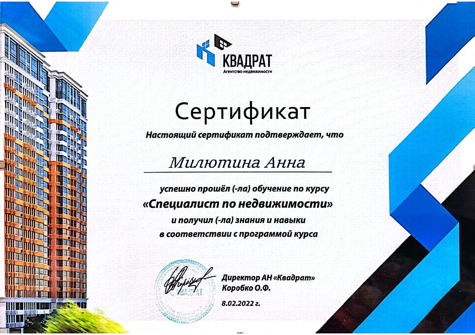 Ведущий агент по недвижимости. Аттестованный специалист Российской Гильдии Риэлторов. Стаж работы в сфере рекламы и продаж - более 12 лет. Квалифицированная и высокопрофессиональная помощь в любом вопросе, связанным со сферой недвижимости.