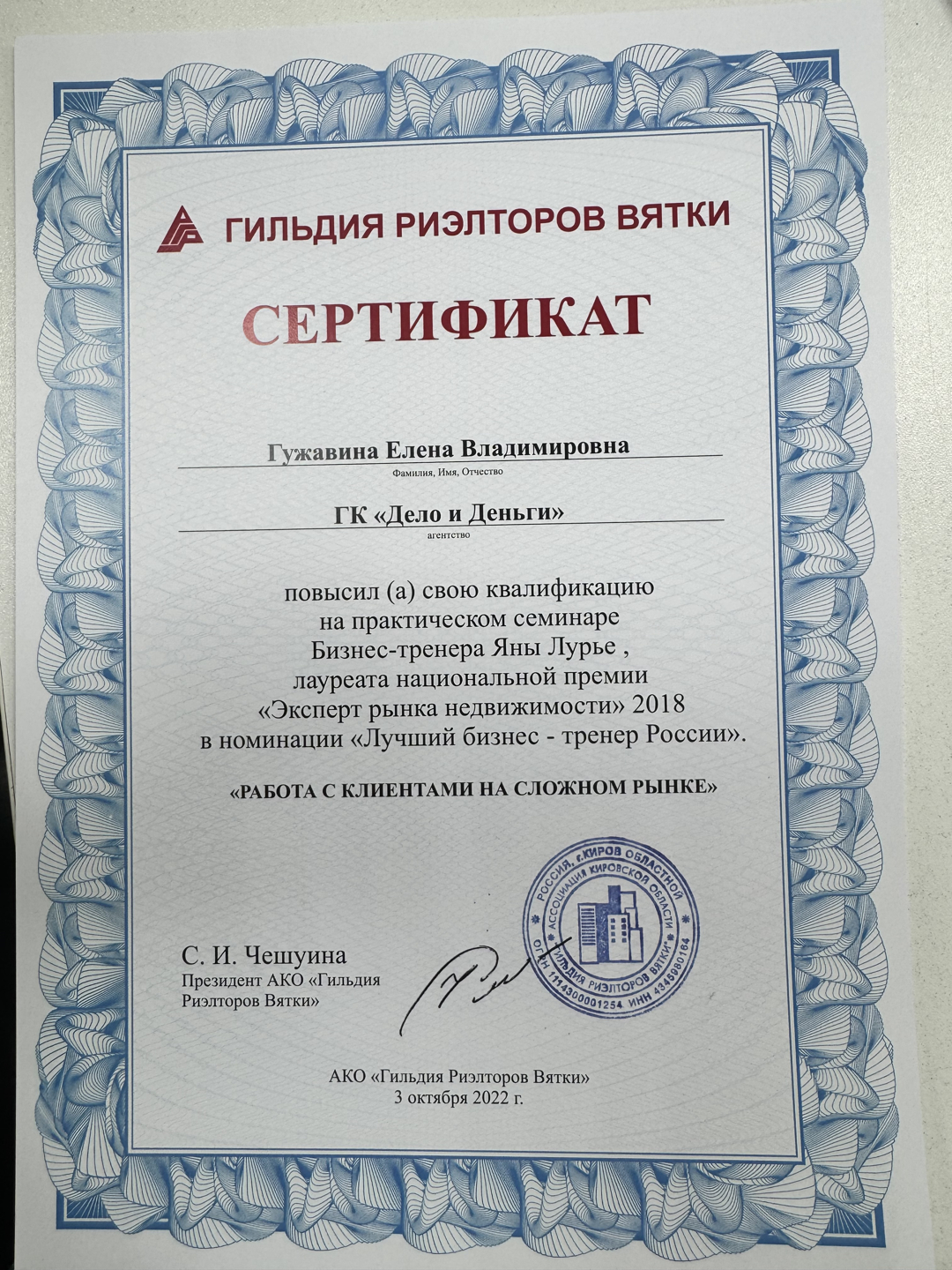 Елена Гужавина грамотный агент и замечательный человек.Все прошло быстро и спокойно.Всегда отвечала на звонки и разрешала все вопросы возникшие вопросы.хочется ещё раз сказать спасибо!Рекомендую!!!