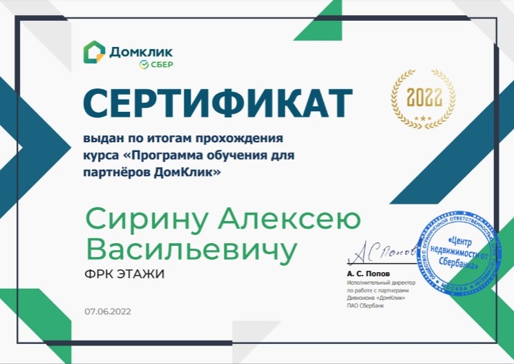 Сирин Алексей Васильевич, очень надёжный, компетентный специалист в сфере приобретения недвижимости. Сделка прошла совершенно спокойно, безопасно. Рекомендую риэлтора Сирина Алексея Васильевича для сотрудничества при приобретении недвижимости