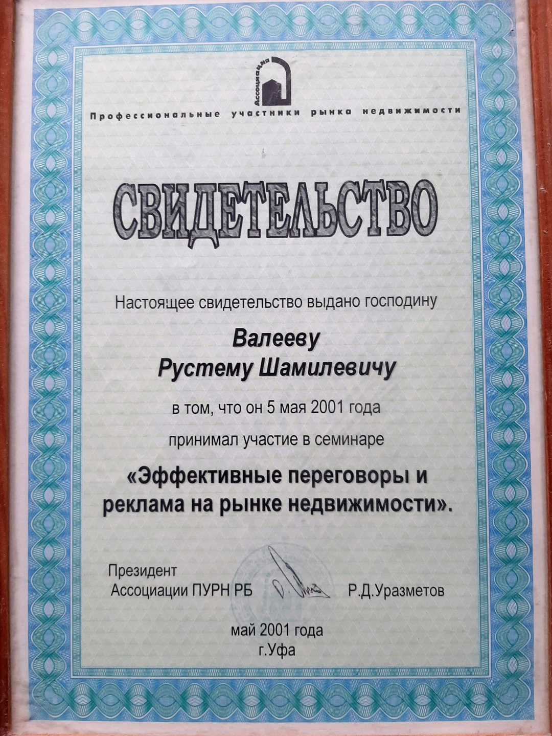 Здравствуйте! Меня зовут Рустем Валеев. В 1999 году начал работать в Агентстве недвижимости “САН”- в одном из первых агентств г. Уфы. В то время наряду с АН "САН" риэлторские услуги оказывали компании "Квадро-А", "Эксперт", "СТАН", "Альтернатива", "Демарис" и другие компании. Накоплен достаточный опыт который будет полезен продавцам и покупателям недвижимости.