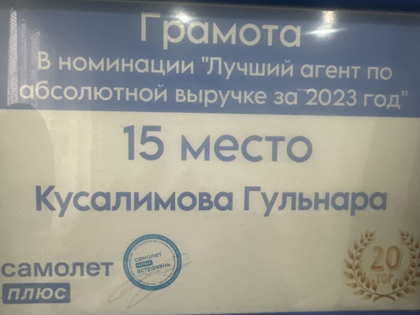От всей души хочу поблагодарить риелтора Кусалимову Гульнару за профессионализм, качественную работу, за душевное отношение и отзывчивость, за выдержку, оперативность, полное сопровождение сделки.