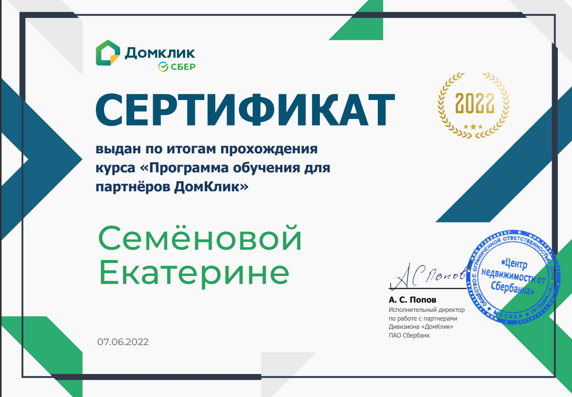 Хочу выразить огромную благодарность за отлично выполненную работу Семеновой Екатерине! Грамотный специалист, знает свое дело, всегда была с нами на связи. Рекомендую!