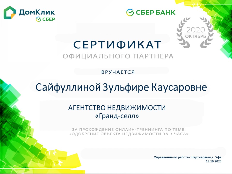 Опыт работы на рынке недвижимости с 2002 года. С 2012 года руководитель ООО "Гранд-селл". Партнер ПАО Сбербанка России.