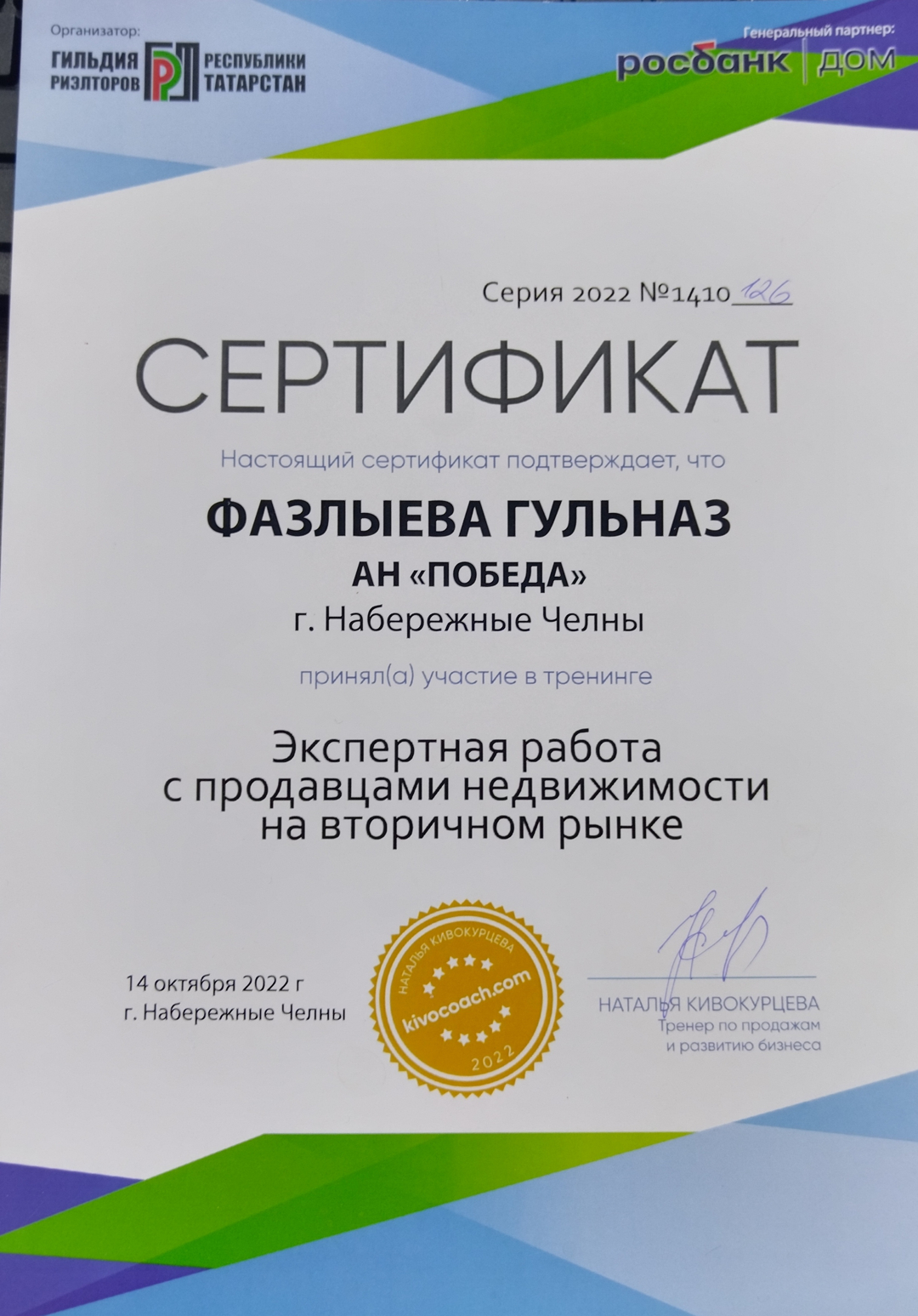 Хочу выразить благодарность риелтору Гульназ за профессионализм и внимательное отношение на всех этапах сделки. Особенно ценю ее за коммуникабельность и терпение, всегда была на связи и объяснила все доступным языком. Рекомендую Фазлыеву Гульназ всем, кто ищет надёжного и ответственного специалиста!