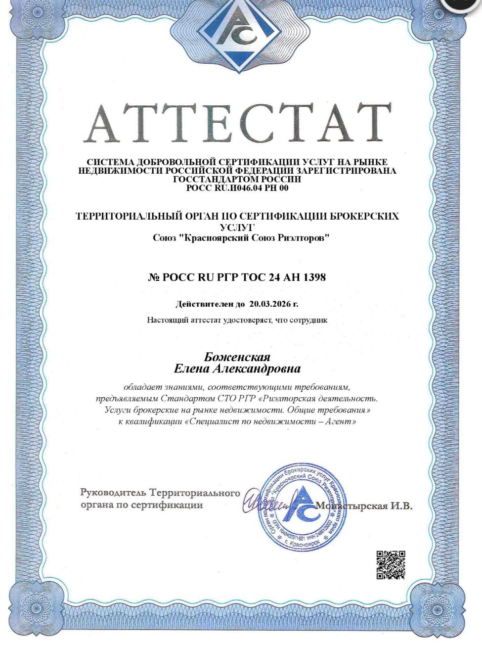 Елена очень хороший специалист, помогала даже после получения договора собственности и отплаты, вплоть до получения ключей от бывших владельцев жилья. Внимательная и отзывчивая!❤️