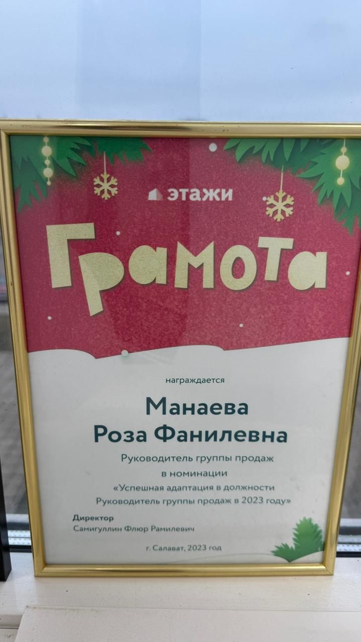 Спасибо эксперту по недвижимоси Манаевой Розе Фаниловне за сопровождение сделки покупкой и продажей квартиры . Специалист был всегда на связи, терпелива и позитивна. Спасибо Вам 💫💫💫