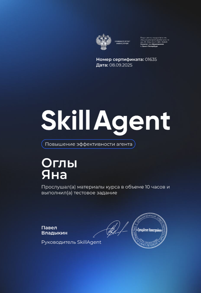 Яна огромное спасибо за помощь в покупке квартиры, очень отзывчивое и внимательное обращение с клиентами. Здоровья и процветания Вам!