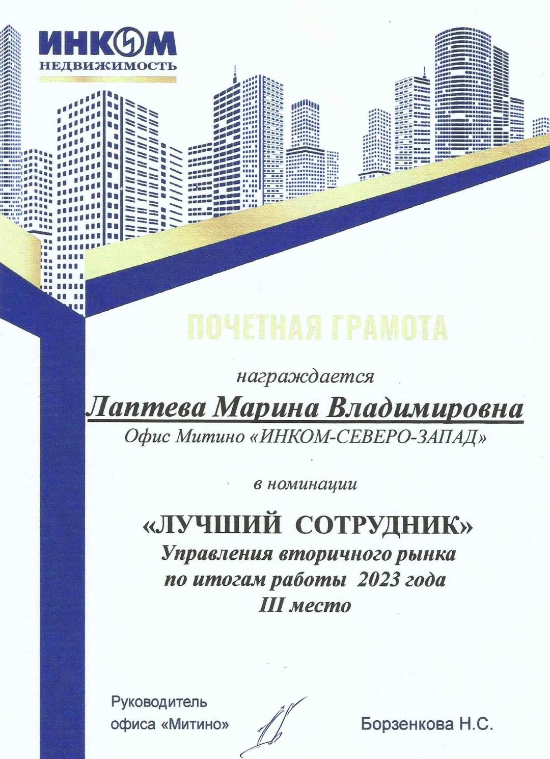 Марина не просто прекрасный риелтор, но и человек с большой буквы. На всех этапах сделки я чувствовала себя как за каменной стеной. Я очень благодарна за помощь, и уверена, что еще ни раз обращусь к Марине за помощью. И обязательно буду рекомендовать такого невероятного специалиста всем своим друзьям) Лучшая🌹