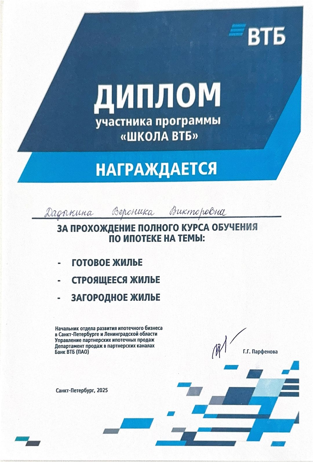 Хочу выразить огромную благодарность Веронике и всем её рекомендовать. Мы купили квартиру , для нас это был первый опыт, Вероника довела нас от начала до конца. Она отличный специалист своего дела. Было очень волнительно и страшно, но у Вероники все чётко, быстро ( от начала поиска квартиры до получения ключей) и по плану и все прошло комфортно и спокойно. Рекомендую.