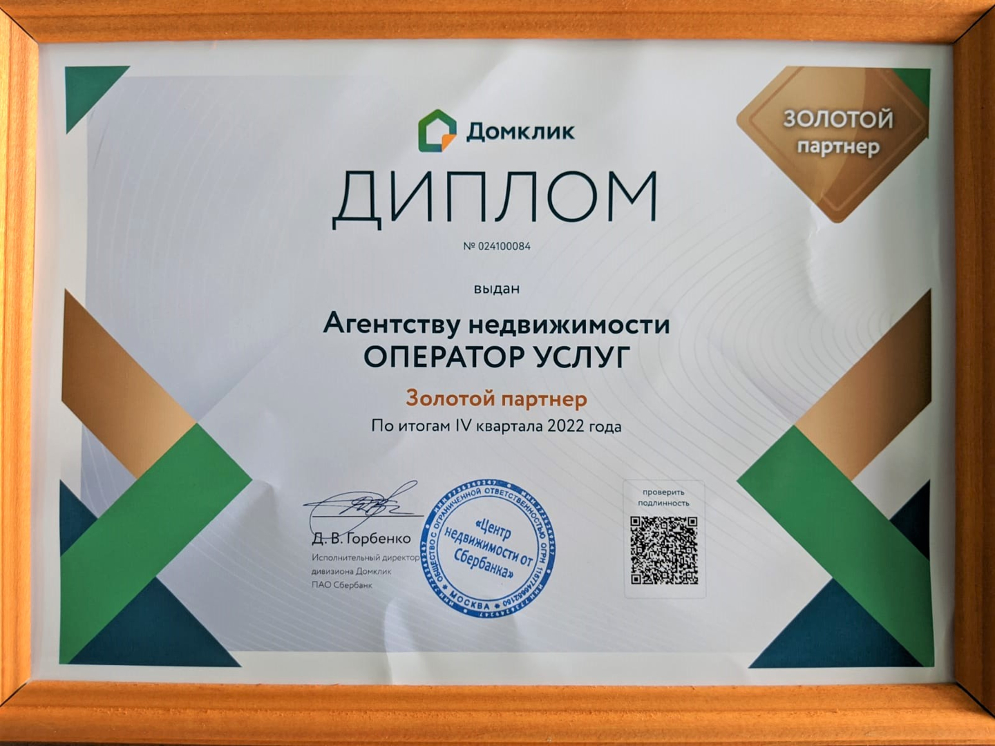 Агентство Недвижимости "Оператор Услуг" является золотым партнером "Сбербанка России" . Наше агентство проводит все операции с недвижимостью: продажа, покупка, обмен, составление договоров, юридическое сопровождение сделок, одобрение ипотеки в офисе агентства, работа с сертификатами, бесплатные консультации по вопросам недвижимости.