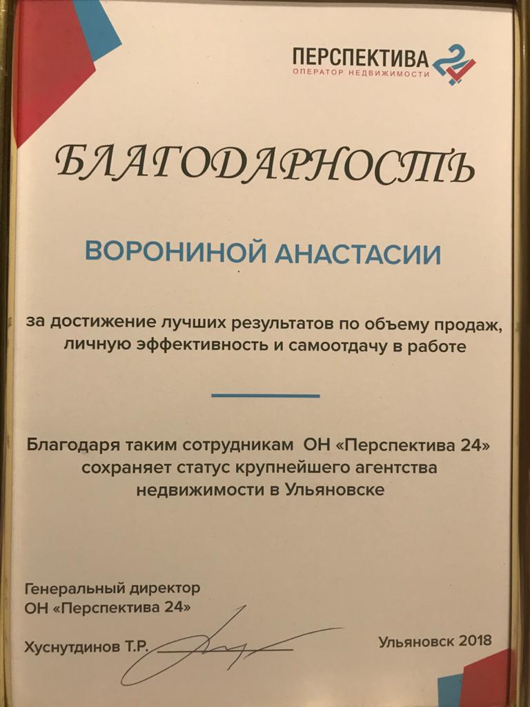 Анастасия отличный профессионал, быстро продала и подобрала недвижимость,здорово помогла в нестандартных ситуациях.
