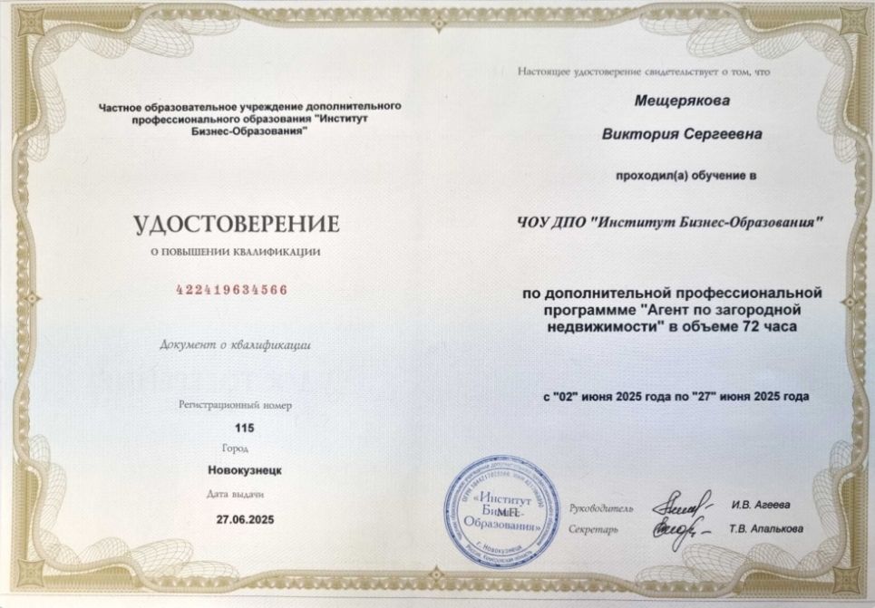 Выражаем Благодарность Виктории Мещеряковой за профессиональное проведение работы. Сделка прошла быстро и чисто, а самое главное успешно 🙏🙏🙏 В процессе работы нам предоставлялись грамотные пояснения по всем возникающим вопросам. Так же отмечаем, чуткое отношение к клиенту. Уважаемые Клиенты, обращаясь к Виктории, знайте, Вы в надёжных руках., надёжного, внимательного и честного риэлтора!