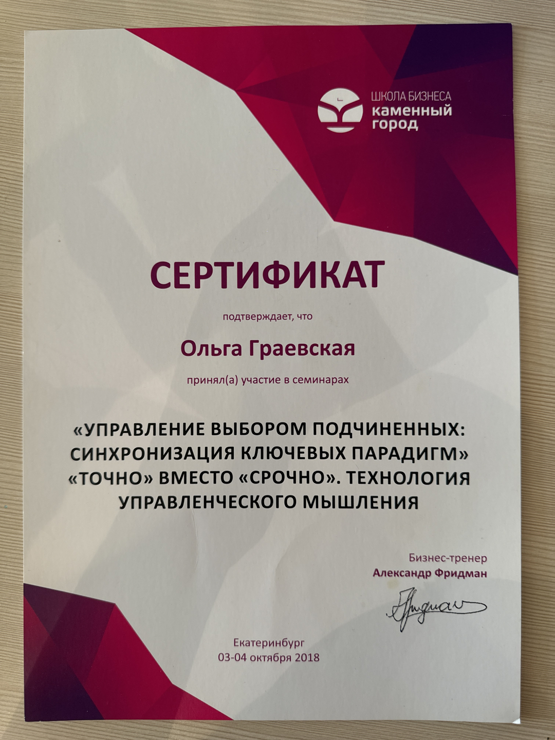 Хочу поблагодарить за добросовестную, профессиональную, оперативную и качественную работу Граевскую Ольгу Петровну! Всегда была на связи, информировала меня обо всех шагах. Чуткая, отзывчивая, тактичная. Спасибо за проделанную работу! В очередной раз я убедилась, что вопросы недвижимости нужно решать только с такими профессионалами своего дела!