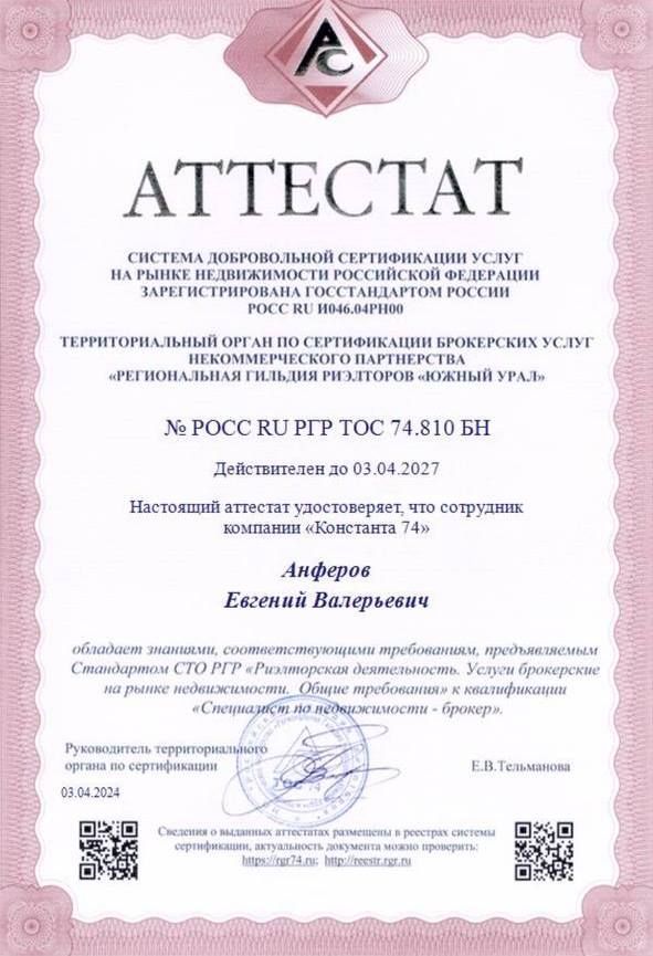 Выражаю большую благодарность Анферову Евгению за проделанную работу! Сделка состоялась, в короткие сроки. Помогал по всем вопросам в любое время. Отличный специалист ! Спасибо!